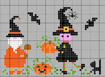 Point de croix, grilles gratuites Halloween : une broderie ou un sort !