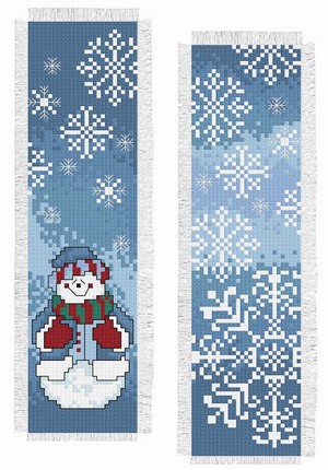 Un marque-pages bonhomme de neige, à broder recto-verso