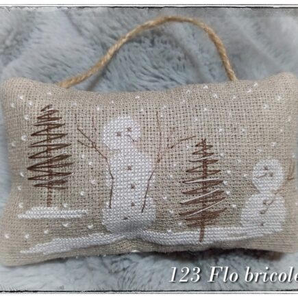 Je suis fan de la douceur qui se dégage des modèles proposés par Jennifer Lentini dans son livre Mon tendre hiver au point de croix J’ai jeté mon dévolu sur deux sympathiques bonhommes de neige.Une toile aïda de lin, en 8 points/cmquelques points de croix, quelques points lancés… et un montage en coussinet pour cet …