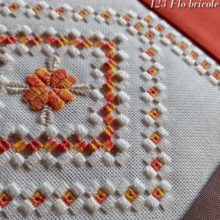 J’ai sorti ma machine à coudre, pour donner une jolie finition à ce petit ouvrage en broderie Hardanger. Le modèle nous a été proposé par Stefany B. A la base, c’est un motif beaucoup plus grand, dont j’ai choisi de retenir un petit élément.Si cela vous intéresse, je vous laisse le découvrir en entier, et …