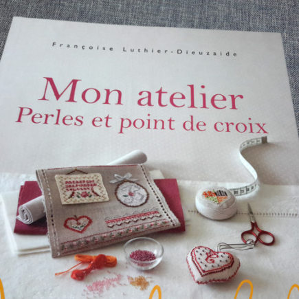 Je vous invite à feuilleter avec moi Mon atelier perles et point de croix de Françoise Luthier-Dieuzaide Quelques conseils pour choisir son matériel… Une petite leçon pour apprendre à broder avec des perles… Et nous voilà prêts à démarrer ! Je vous laisse découvrir les modèles proposés. Le montage de chaque ouvrage est bien détaillé …
