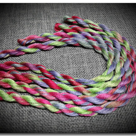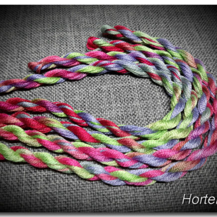 Je découvre avec délectation la broderie Hardanger… J’aime beaucoup ces broderies blanches sur toile blanche, comme la première que j’avais faite. Mais vous connaissez mon amour pour les fils nuancés (et surtout pour le fait de les teindre à la main : j’adoooooooooore..) Donc, ni une ni deux ! Qui est-ce qui a essayé de …