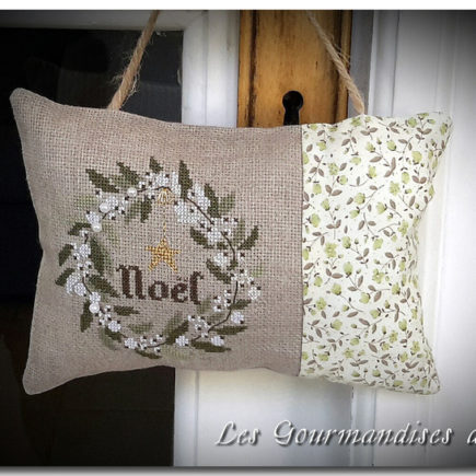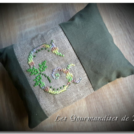 Maintenant qu’il est offert, je peux vous montrer ce petit coussinet brodé avec un de mes fils nuancés Monogramme ancien Lin 12 fils Tissus de mon stock Bonne journée à tous ! FLO