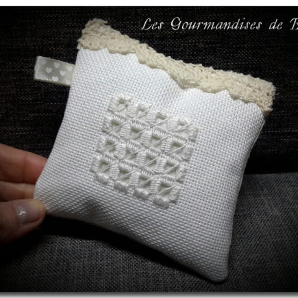 Depuis le temps que la broderie Hardanger me fait de l’oeil, je me suis lancée ! Un petit coussinet loin d’être parfait mais bien sympathique à réaliser ! Si vous pouvez me conseiller des sites, des blogs, des vidéos pour apprendre : je suis preneuse !! Bonne journée à vous ! FLO