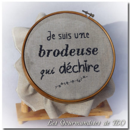 GRILLE GRATUITE au POINT DE CROIX Je suis une brodeuse qui déchire Parce qu’on le vaut bien… Une petite grille maison que je vous offre avec plaisir : à décliner selon vos envies de couleurs… J’ai choisi de broder la mienne sur un lin 12 fils, en 2 fils.Fil Sajou retors du Nord n°2086 …