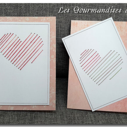 Je vous propose des cartes brodées avec des fils tirés et des coeurs pour la douceur… Le gabarit est juste en-dessous, si vous voulez en faire vous-même ! C’est rapide et sympa à faire. Avec des petits fils nuancés… comme moi… Ou des fils de votre choix ! Et maintenant, c’est à vous ! Choisissez …