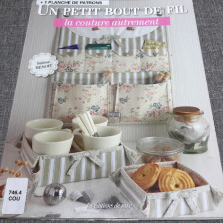 J’ai emprunté à la médiathèque Un petit bout de fil La couture autrement Vous voulez le découvrir avec moi ? Sabine Benoit nous propose un programme alléchant… Avant de se mettre à l’ouvrage, quelques explications techniques… Et c’est parti ! Dans ma cuisine Cahier de recettes Sac à tartes et sa pochette de rangement …